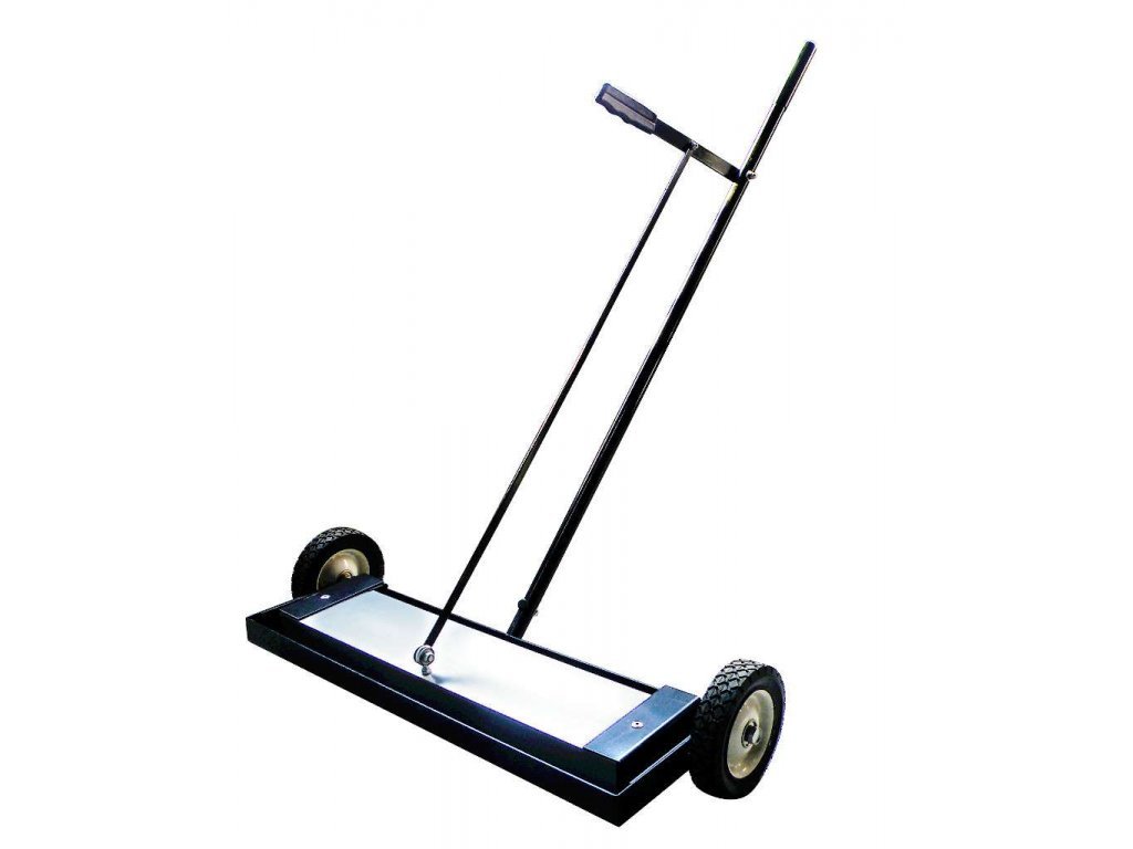 Die magnetische Kehrmaschine (mit Freigabemechanismus) wurde entwickelt, um Eisenpartikel und kleinere Metallgegenstände (wie Nägel, Späne, Nieten, Drähte, Schrauben, Bolzen, Büroklammern usw.) vom Boden zu entfernen. Am häufigsten wird es zum Aufsammeln von eisenhaltigen Gegenständen in Werkstätten oder Produktionshallen eingesetzt. Dank der verstellbaren Arbeitshöhe kann der Magnetbesen auch im Freien oder auf unebenen Flächen ferromagnetische Kleinteile aufsammeln. Es wird häufig zum Reinigen von Parkplätzen verwendet, wo Nägel und andere eisenhaltige Gegenstände auftreten und Reifenschäden verursachen können.