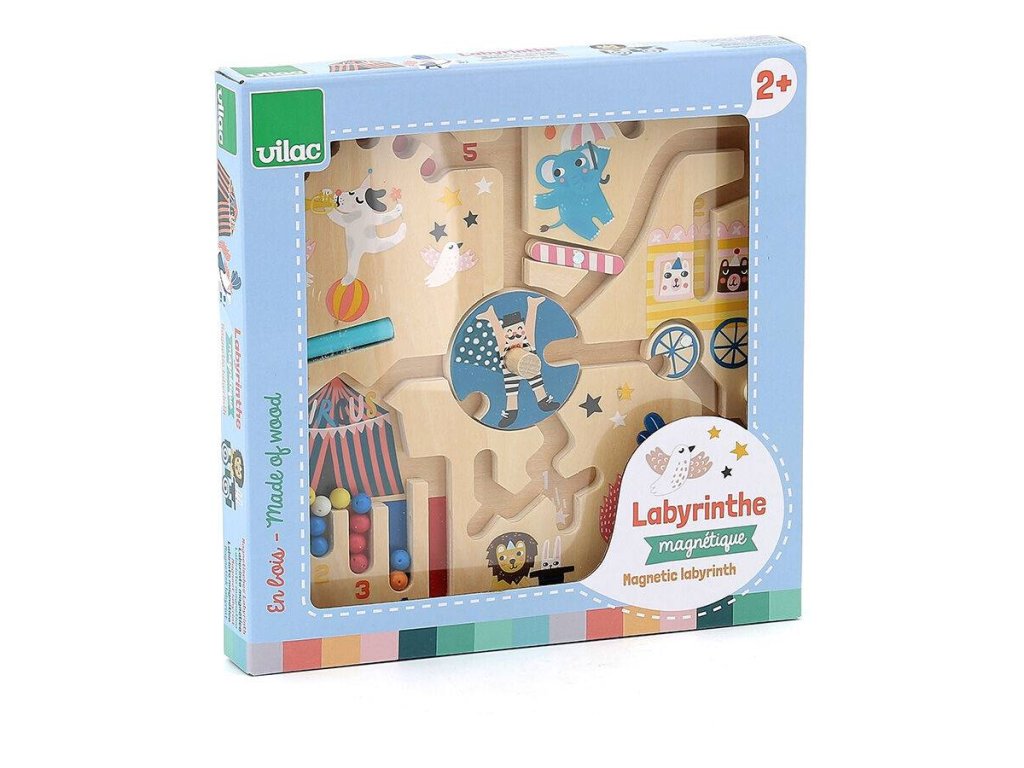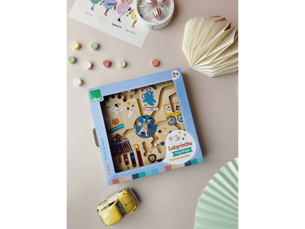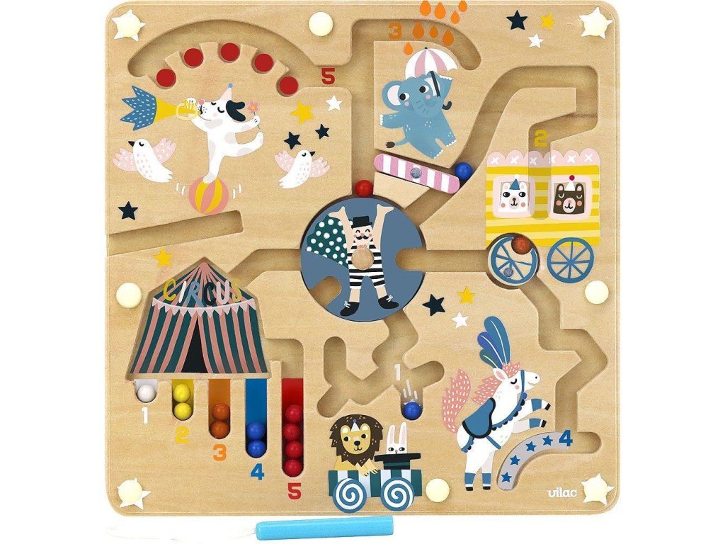 Das Magnetspiel Zirkuslabyrinth zum Thema Zirkus, mit wunderschönen Illustrationen von Michelle Carlslund, wurde speziell für kleine Kinder entwickelt, um ihre Sinne und motorischen Fähigkeiten zu fördern.