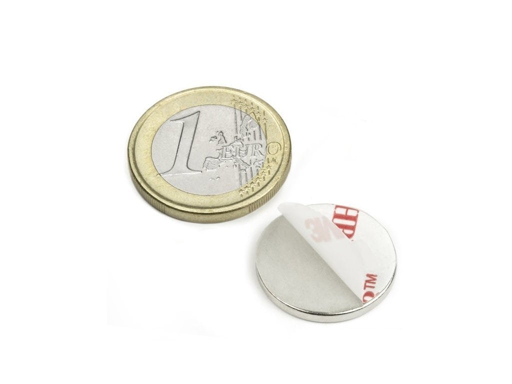 Neodym-Scheibenmagnet (selbstklebend) D 20x2 mm, Neodym, N38, vernickelt