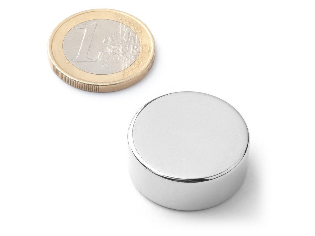 Neodym-Scheibenmagnet D 25x10 mm, Neodym, N40, vernickelt